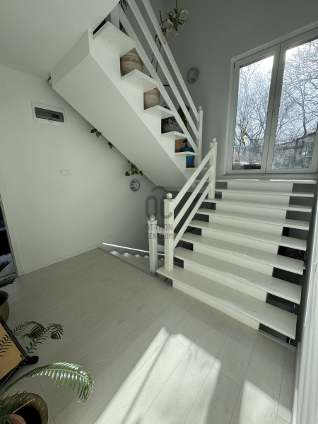 A ház 2000-ben épült, 2021-ben teljes körűen megújult. Vastag hőszigetelés, monolit födém, prémium burkolatok, 3 rétegű nyílászárók, Velux tetőablakok, toló teraszajtók – a kint és bent határa szinte eltűnik.