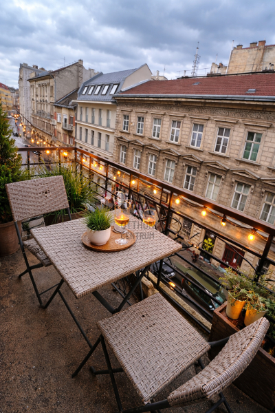•Napfényes erkély, utcai nézettel