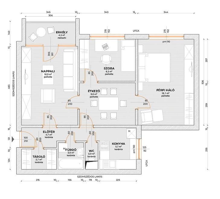 A nappaliból egy 4 m²-es erkélyre léphetünk ki, ahonnan parkos, zöld környezetre nyílik kilátás, ami kellemes, nyugodt hangulatot biztosít.