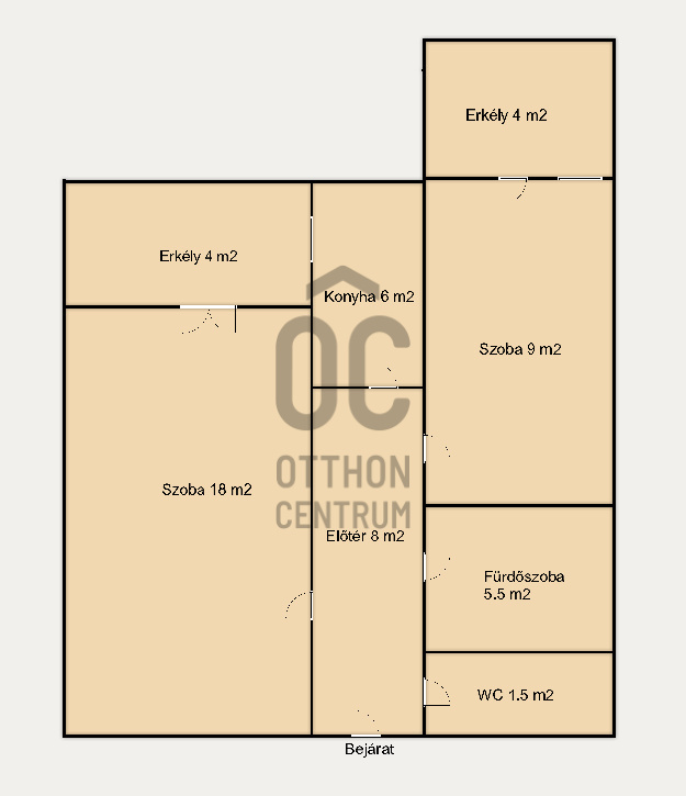 -Tágas nappali terasszal, hálószoba külön terasszal, konyha, fürdőszoba, külön wc, előtér