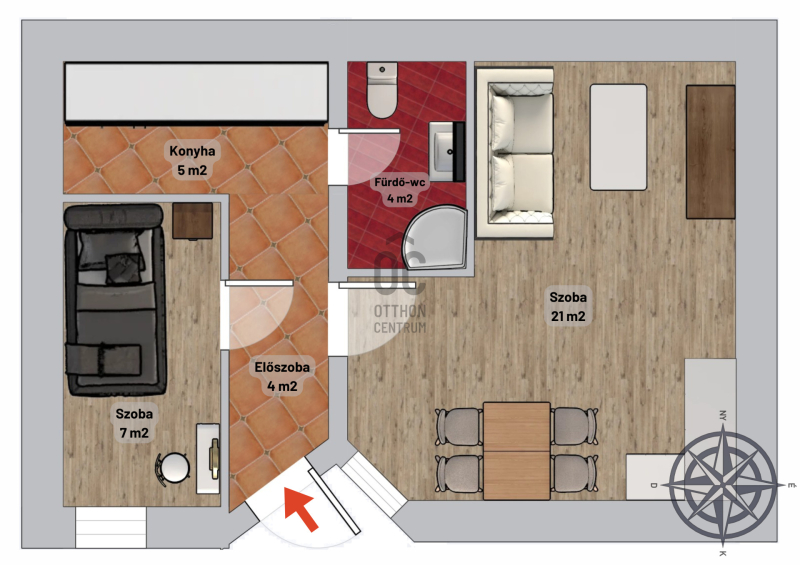 ➡️ Földszinti, 41 m2-es, kétszobás, fekvő galériás nappalival rendelkező ingatlan.