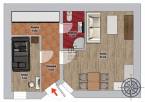 ➡️ Jelenlegi felosztása: előszoba, fekvő galériás nappali - étkező, hálószoba, konyha, fürdőszoba-wc.
