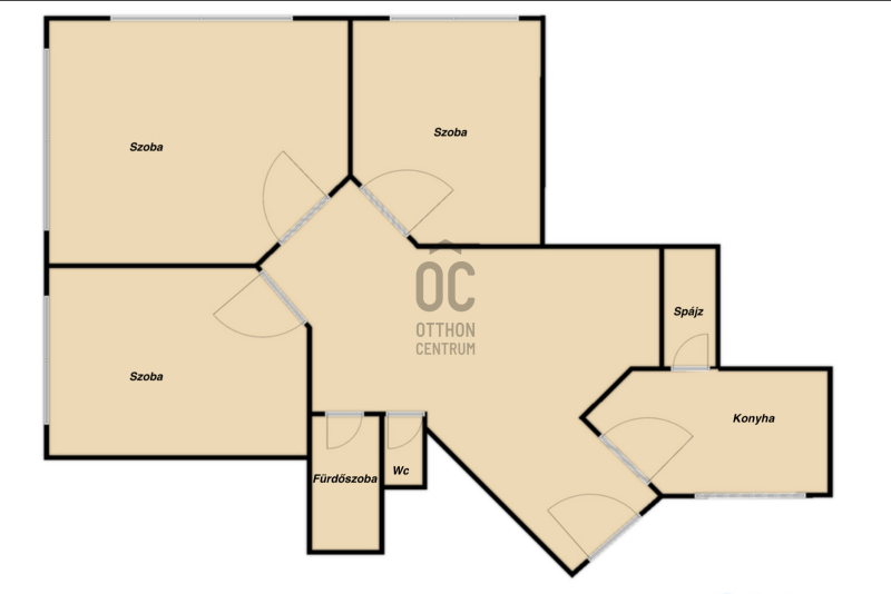 •hatalmas, napfényes, külön nyíló szobák