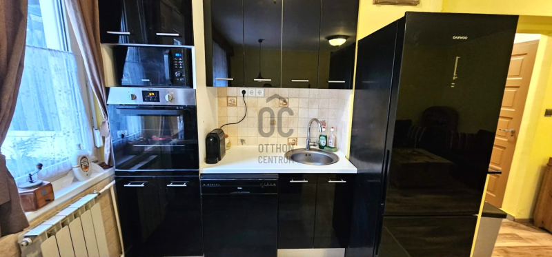 - moder konyha gépesítve: sütő, főzőlap, mikróhullámú sütő, mosogatógép, hűtő ( minden egységes fekete)