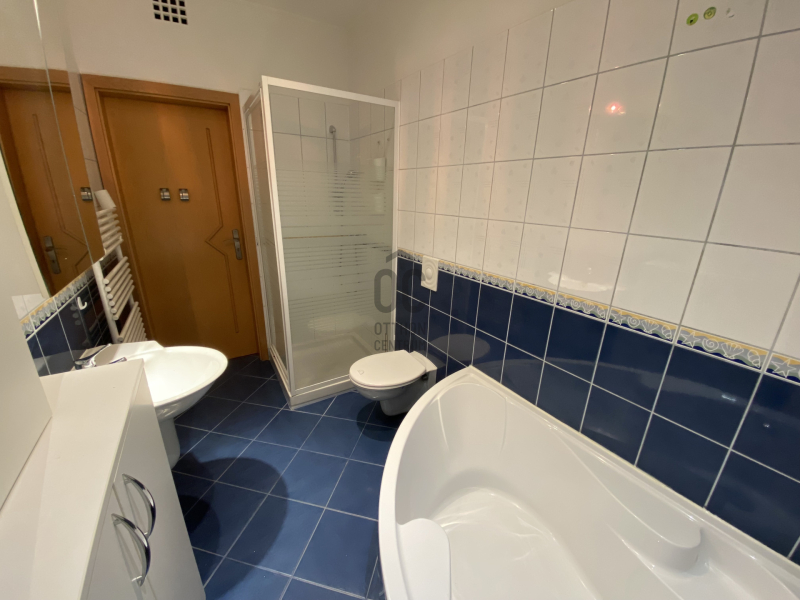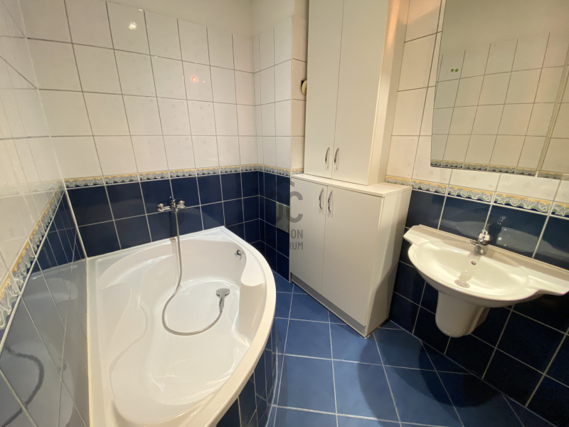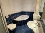 •fürdőszoba sarokkáddal, zuhanyzóval és WC-vel