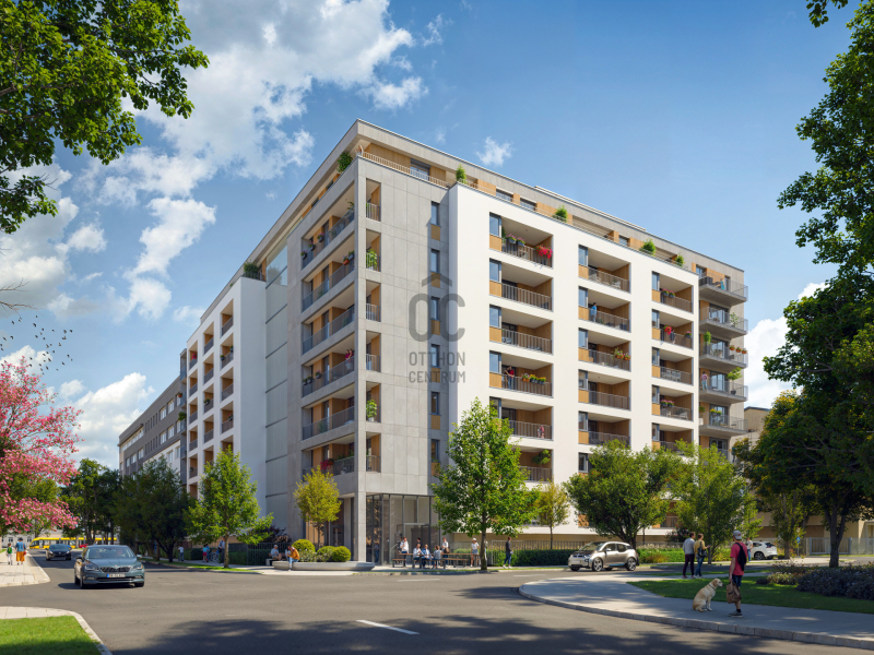 Ahogy közelebb lépsz, a homlokzat letisztultsága, a loggiák ritmikus váltakozása azonnal megragadja a tekinteted. A pálcás korlátok finom eleganciát sugároznak, a napfény pedig játékosan tükröződik a teraszok üvegfelületein. Már kívülről is érezni: ez nem csupán egy lakóépület, hanem egy életérzés.