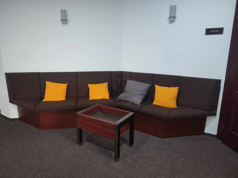 fan coil fűtés, zárt parkoló, emeletenként, férfi, női mosdók, és konyha található.