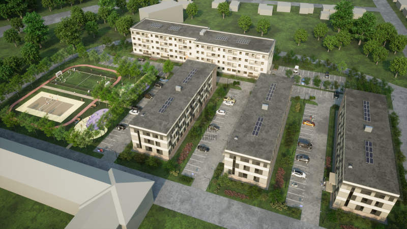 A lakópark területén 4 épület található: