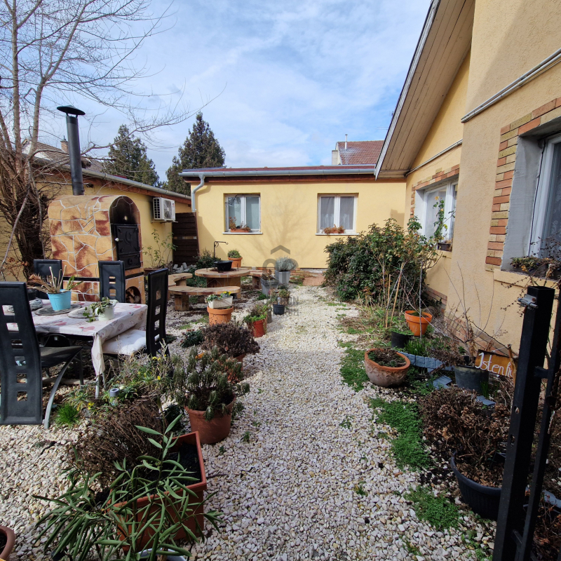 A telekrész teljesen leválasztott, önálló bejárattal rendelkezik, két autó számára parkolási lehetőséggel. A kertben pihenésre és grillezésre alkalmas rész került kialakításra.