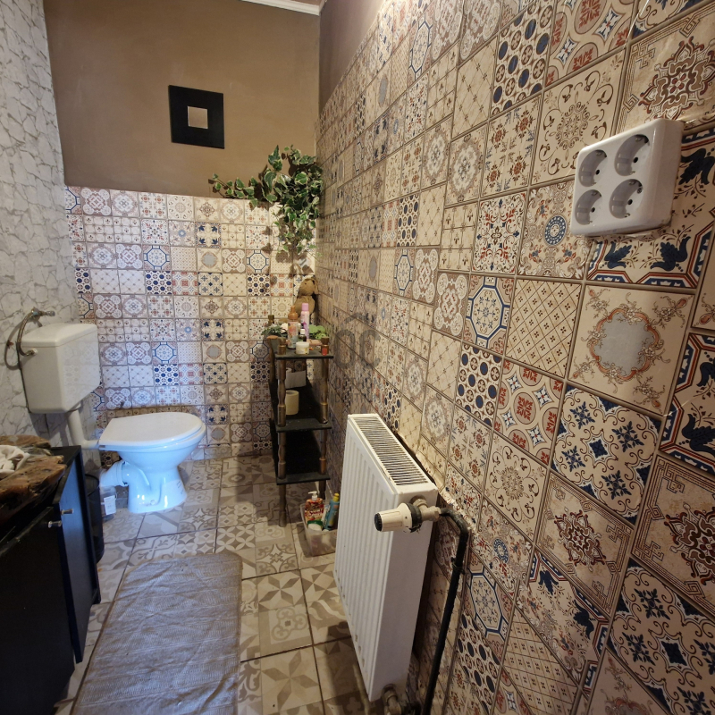 Az emeleten fürdőszoba és WC található, míg a földszinten a fürdő és a WC külön helyiségben kapott helyet.