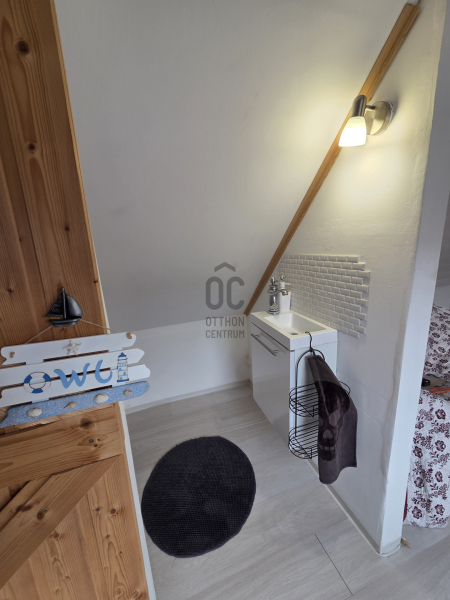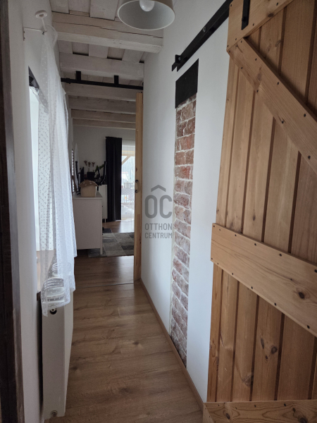 A ház egyik különleges értéke a hagyományos parasztfödém, amely autentikus hangulatot kölcsönöz az enteriőrnek, miközben esztétikai fókuszpontként is funkcionál. A természetes anyaghasználat és a korszerű kialakítás együttesen teremtenek egyedi, mégis otthonos atmoszférát.