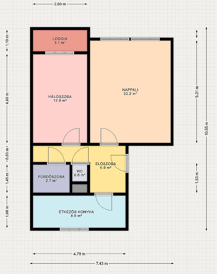 A jelenlegi alaprajz kiváló, az átalakítási lehetőség adott – egy modern, 3 szobás, étkezős konyha elrendezésű könnyen megvalósítható, amely jelentősen növeli a komfortot és az értéket.