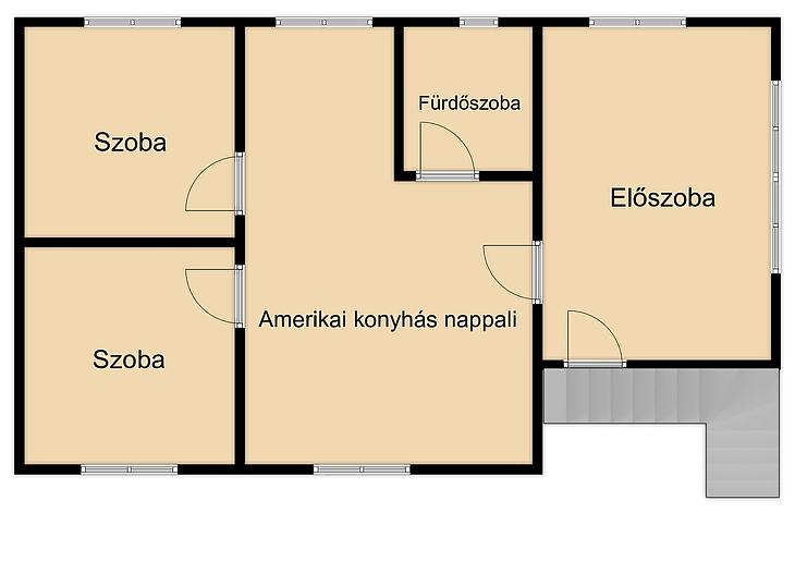 Jelenlegi állapotában az ideális kialakítása amerikai konyhás nappali lenne, 2 külön nyíló szobával és fürdővel. A válaszfalak nagy része gipszkartonból készült így könnyen saját ízlésre lehet alakítani.
