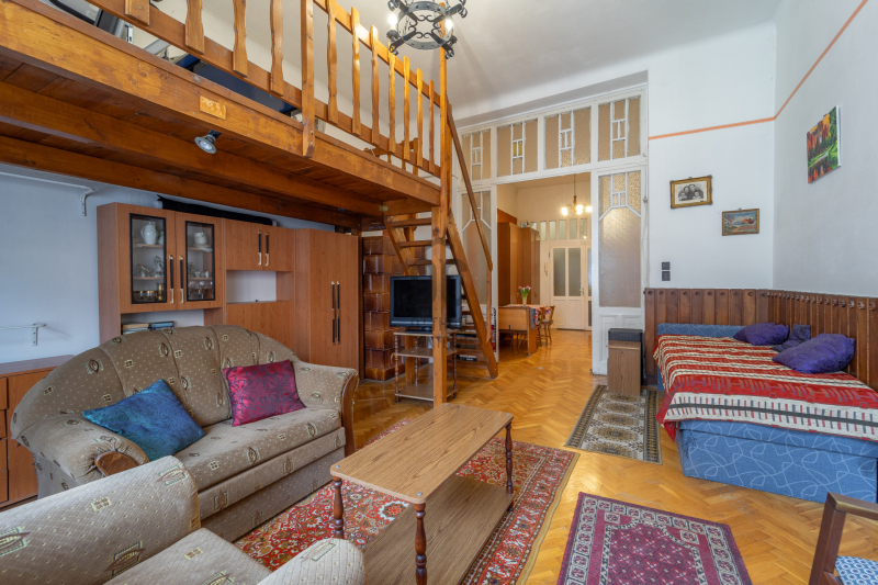 Budapest VIII. kerületében, a Blaha Lujza tér közelében eladó egy 1. emeleti, Csokonai utcára néző, nagy ablakos, tágas terekkel rendelkező nagypolgári lakás.