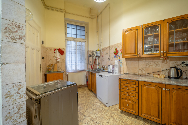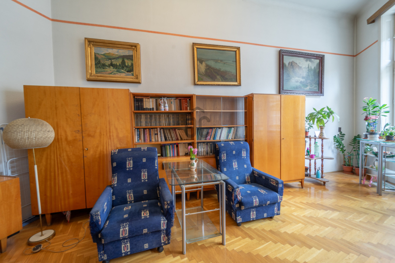 Az ingatlan három utcára néző, világos szobával rendelkezik, a nagy belmagasság igazi polgári hangulatot ad.