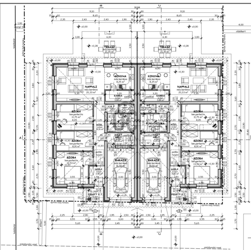 - garázs, elektromos garázskapuval (16,5 nm)