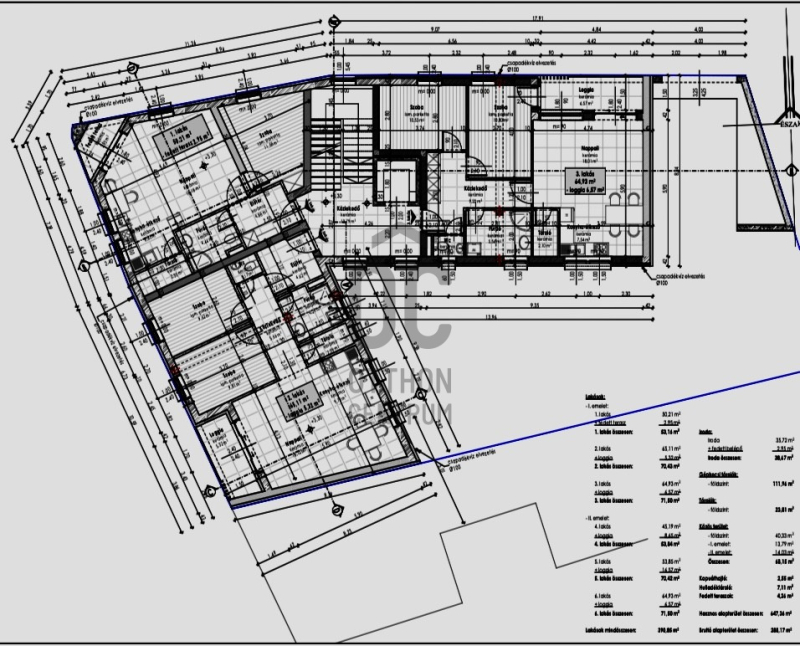 A társasházban 50 - 65 nm-es lakások találhatók. Minden lakáshoz tartozi önálló tároló, melynek megvásárlása kötelező: ára 2.4 MFt.