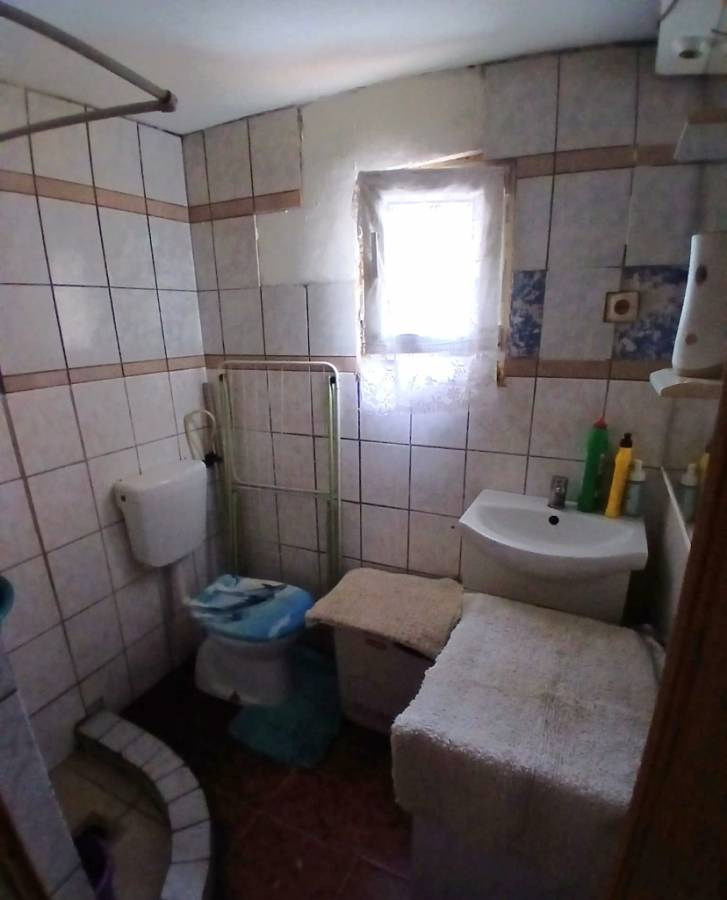 Fa nyílászárók, fürdőszoba-wc együtt van. Minden helyiség járólappal burkolt, falak festettek. Fűtése jelenleg folytonégő kályhával megoldott. Víz, gáz az utcában, villany be van vezetve a lakásba. Főzés palackos gáztűzhellyel megoldható. 5 cm-es hőszigetelés van a házon.