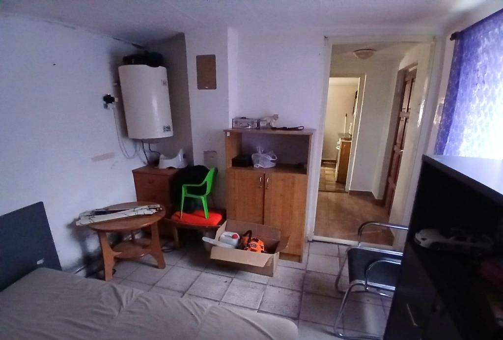 A külön bejáratú szoba padlózata beton. Szükség esetén egybenyitható a lakás többi részével.