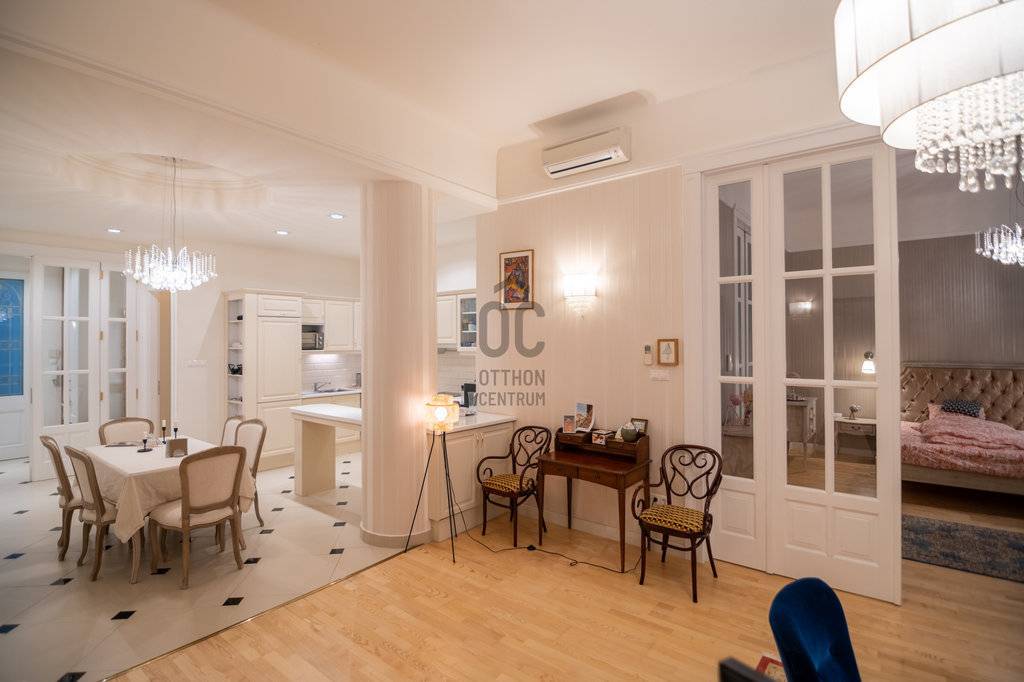 Történelmi polgári lakás Budapest V. kerületének patinás városrészében ahol az időtlen elegancia és a múlt értékei találkoznak.