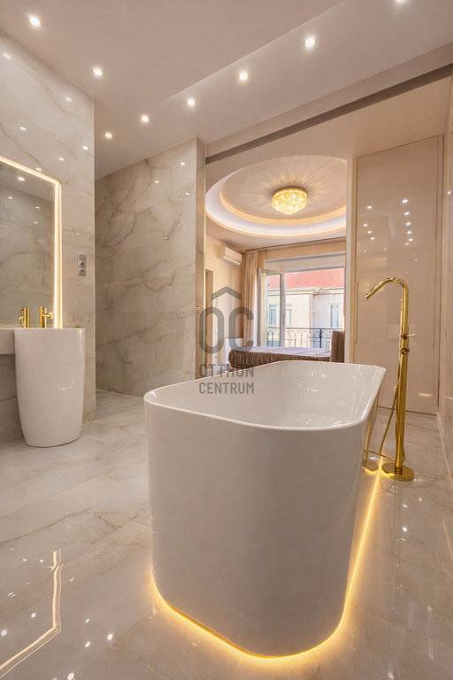 A lakás teljes felújításon esett át, melyhez prémium minőségű anyagokat használatak fel. Az intelligens otthon kezelése Loxone programmal vezérelt, melyet mobiltelefonra töltve sok hasznos funkció (világítás, redőnyök, stb) kézből irányíthatóak!