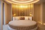 Az fő hálószobát egy széles, eltolható üvegajtó választja el a fürdőszobától, melyet ha kihúzunk a két tér egybeolvad. A main bedroom további ékessége egy hatalmas prémium, bőr körágy, mely vonalához igazodó beépített szekrény teszi különlegesen vonzóvá.