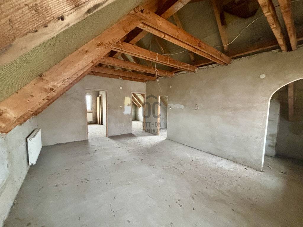 - Külső lépcsőn jutunk fel a szerkezetkész tetőtérbe, amelynek a befejezésével egy külön lakrész alakítható ki.