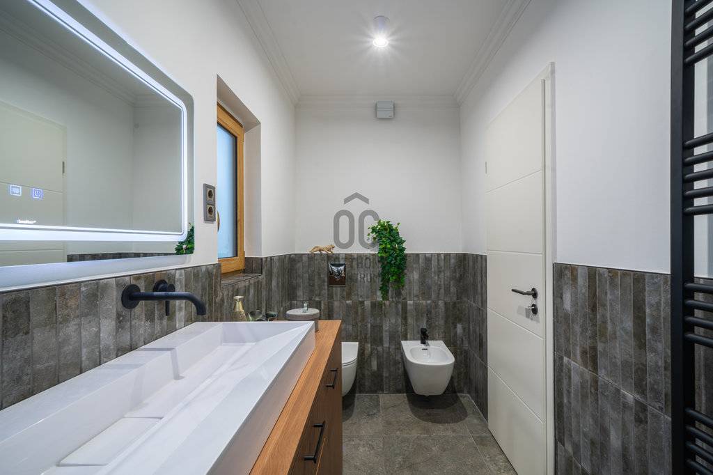 A padlófűtéssel temperált, napfényes télikerten keresztül érkezünk az otthonba, amely elegáns átmeneti térként fogad, és természetes kapcsolatot teremt a nappali–konyha–étkező térrel. Ez a nagyvonalú, világos egység a családi élet és a vendéglátás ideális színtere.