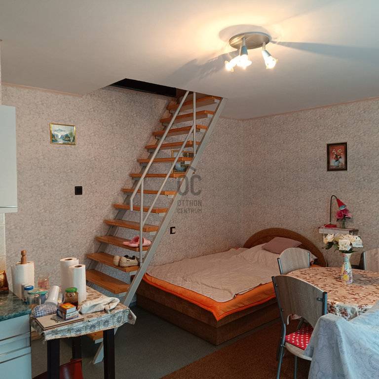 -a hátsó udvari ház: 30 m2 nagyságú: konyha-étkező-nappali, mosdó-WC került kialakításra, felső szinten hálószobával