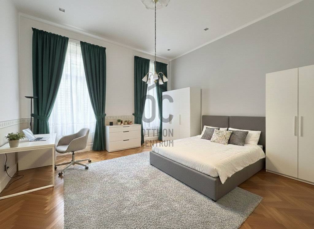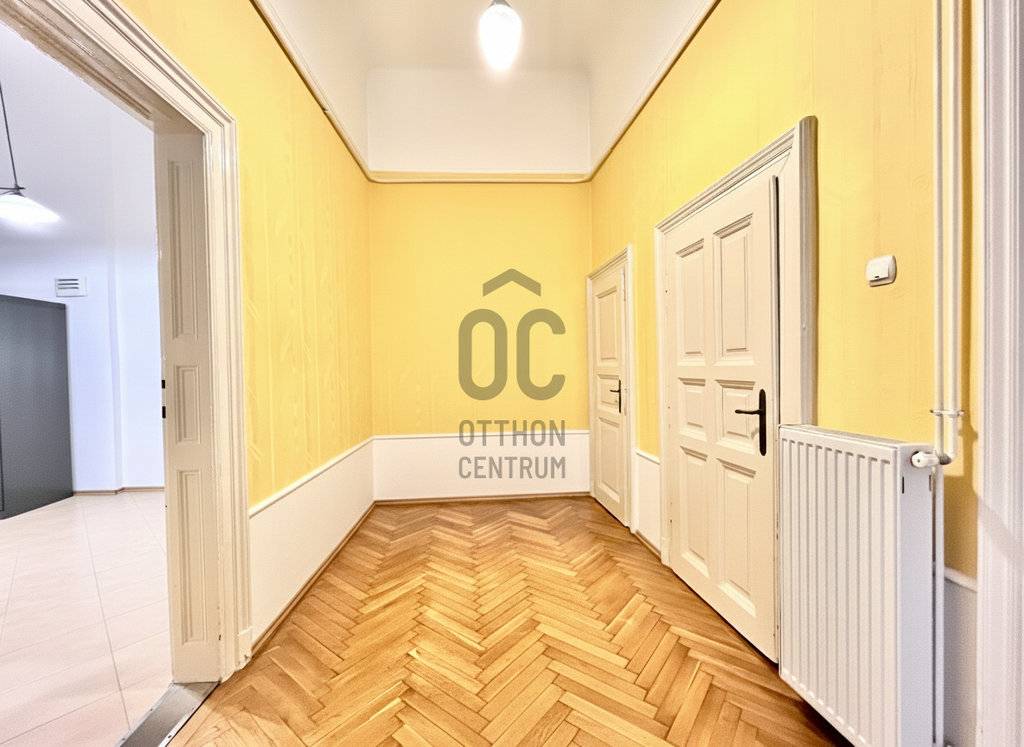 A belváros szívében, a körúttól mindössze egy utcányira kínálunk megvételre egy tágas, 114 m²-es polgári lakást, amely adottságainak köszönhetően kiváló választás nagyvonalú otthonnak, értékálló befektetésnek, illetve igényes iroda vagy rendelő kialakítására is.