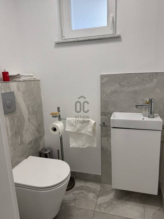 A ház 2000-ben épült, 2021-ben teljes körűen megújult. Vastag hőszigetelés, monolit födém, prémium burkolatok, 3 rétegű nyílászárók, Velux tetőablakok, toló teraszajtók – a kint és bent határa szinte eltűnik.