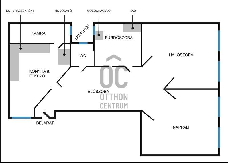 A lakásban kamra is található valamint minden helyiség ablakos.