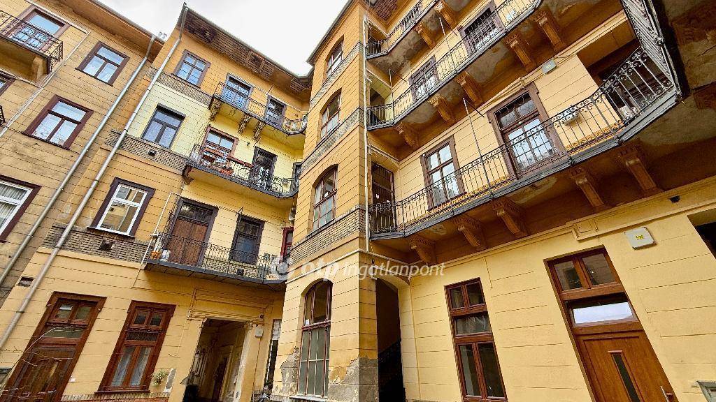 Eladó egy 66 m2-es (41 m2 lakótér + 25 m2 állógaléria) lakás, amelynek ténylegesen használható tere jóval meghaladja a hivatalos alapterületet. A lakás a Teleki László tér mellett található, egy rendezett, mindössze huszonhárom lakásos, műemléki védettség alatt álló társasház földszintjén. A belmagasság rendkívül impozáns, 4,4 m, ami ritkaságszámba megy és különleges térérzetet ad a helyiségeknek. A teljes szoba felett állógaléria található, amely két méter magasan használható, így valódi élettérként funkcionál.