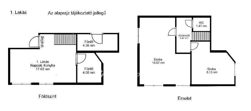 1-es lakás: 50,45 nm / nappali + 2 háló, 6 fő férőhely , 64.9 millió ft