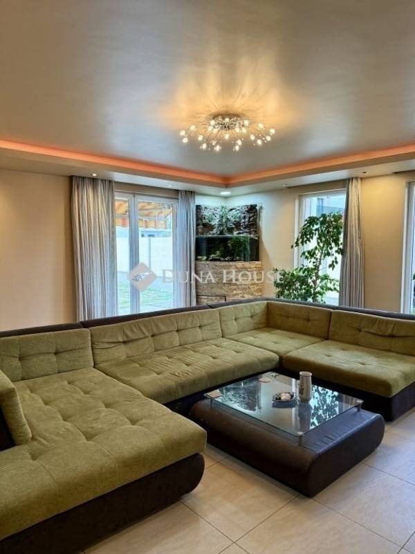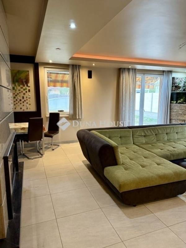 Főbb jellemzők:- Lakóterület: 164 m²- Telekrész: 577 m²- Elrendezés: amerikai konyhás nappali + 3 hálószoba + 2 fürdőszoba- Szintek: földszint + emelet- Garázs közvetlen bejárattal az előszobába- Nagy terasz árnyékolóval- Több autós beállási lehetőség az udvaronHelyiségek elosztásaFöldszint: Előszoba, Amerikai konyhás nappali + étkező, Kamra, Zuhanyzós fürdőszoba, TeraszkapcsolatEmelet: 3 hálószoba (2 gardrób helyiséggel), Háztartási helyiség, Kádas fürdőszobaMűszaki felszereltség és extrák:- Tégla falazat, dryvit szigeteléssel- Műanyag nyílászárók + szúnyogháló + árnyékolók- Cserép tetőfedés- Padlófűtés + radiátoros fűtés + kandalló- Kombicirkó kazán + klíma- Elektromos kapu, riasztórendszer- Spotvilágítás, álmennyezet, laminált padló + igényes burkolatok- Mennyezetig érő L alakú konyhabútor- Árnyékolt terasz, rendezett kertA közművek önálló mérőórákkal rendelkeznek, az ingatlan per- és tehermentes.A bútorzat megegyezés tárgyát képezi.
