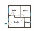 Belépés után az előszoba-konyha részbe érkezünk, innen nyílik a többi helyiség is.