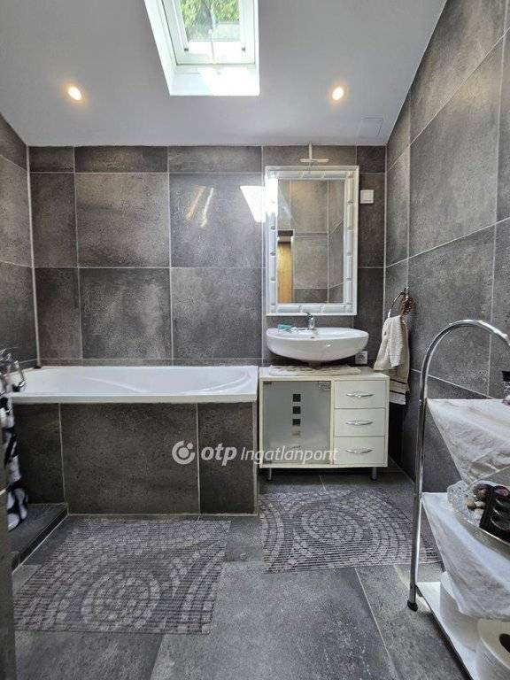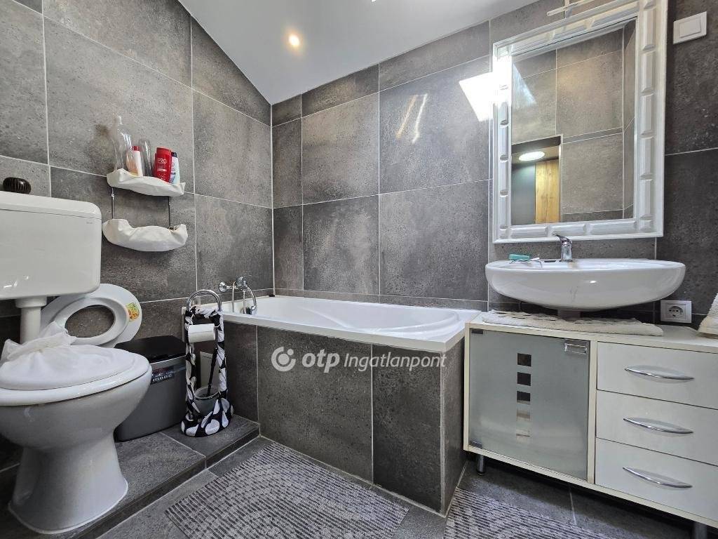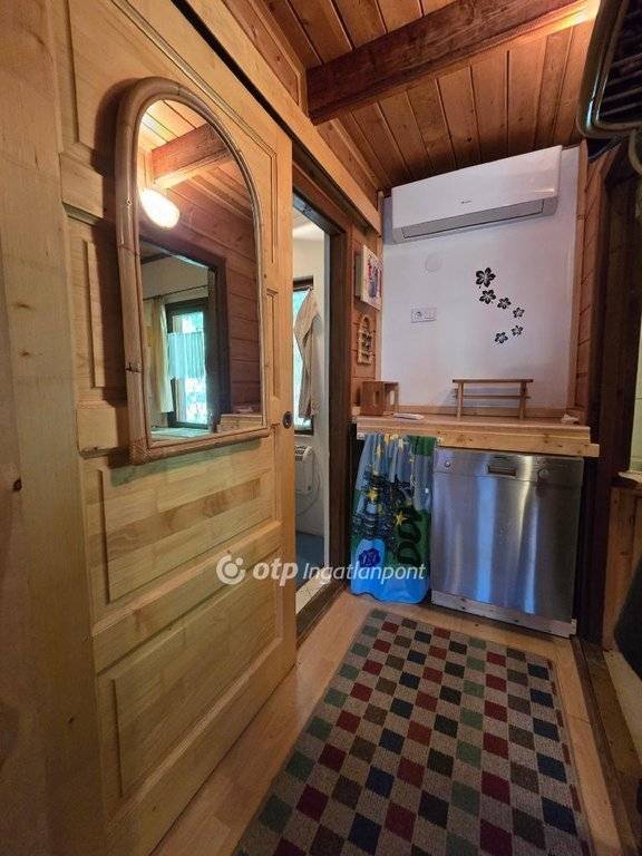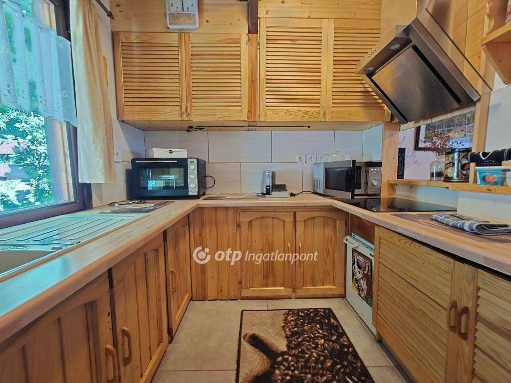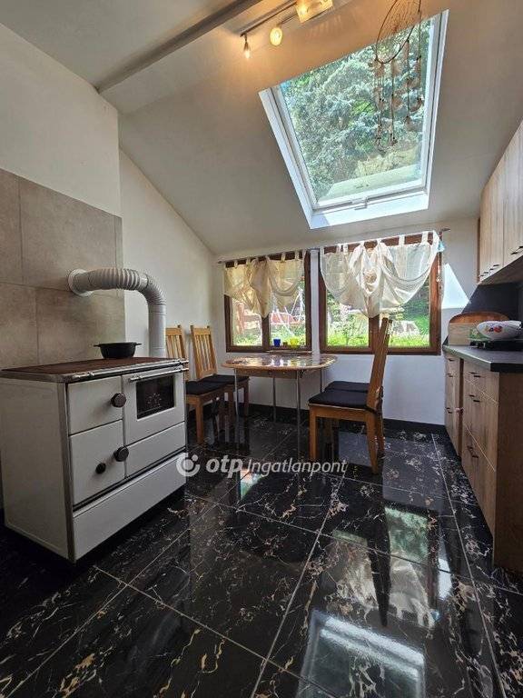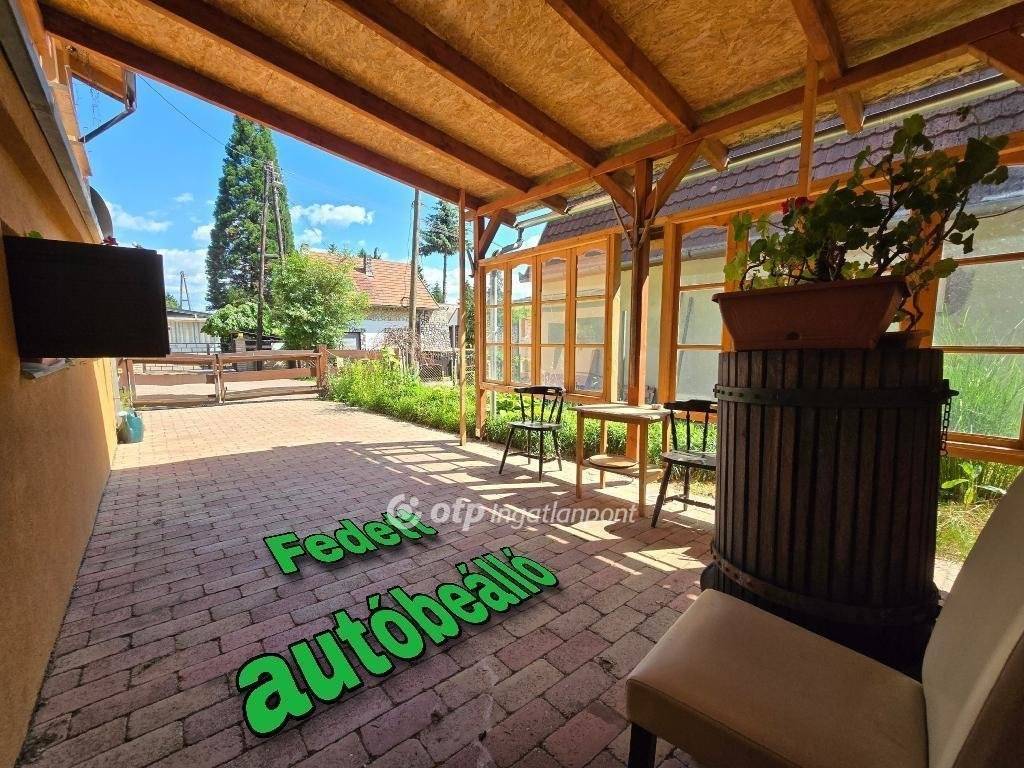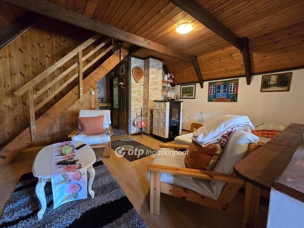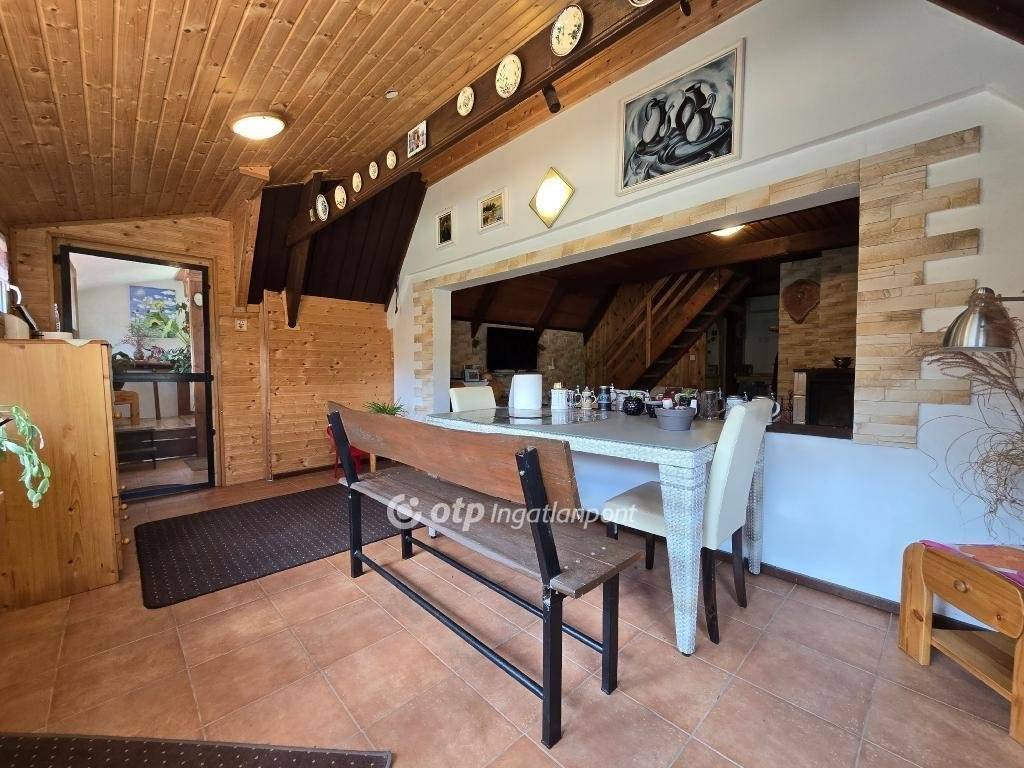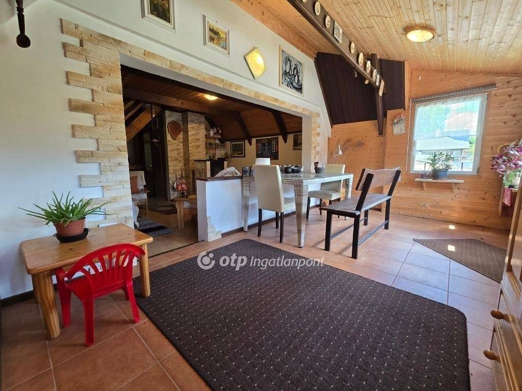 Eladásra kínálunk Veszprém Vármegyében, a Bakony egyik legkedveltebb üdülőövezetében, Döbröntén, egy 125 m2-es, jelenleg állandó lakhatásra is kiválóan alkalmas hétvégi házat. Az ingatlan közvetlenül az erdő szomszédságában helyezkedik el, ahol a természet közelsége valóban kézzelfogható - itt reggelenként madárcsicsergésre ébredhet! Az ingatlan tégla- és faszerkezetű kialakítású, nettó 125 m2 alapterületű, összesen 2+2 szobás, két lakószinttel rendelkező épület, amely az elmúlt évek során teljes körű felújításon esett át - így kiváló műszaki és esztétikai állapotban várja új tulajdonosát. A földszinten egy hangulatos előszoba, közlekedő, modern konyha-étkező, fürdőszoba WC-vel, valamint egy pihenésre kialakított szoba kapott helyet. Ezen a szinten található továbbá egy praktikus tároló és egy különálló mosókonyha is. A beépített bútorok mind újszerű állapotúak, ízlésesen illeszkednek az ingatlan stílusához. Az emeleti szinten egy egybenyitott nappali-étkező tér került kialakításra konyhával, valamint itt található egy második fürdőszoba WC-vel és két tetőtéri félszoba is. Az épület kiváló hőszigetelése - a 10 cm-es homlokzati szigetelés, a 4 cm-es nikecelles fa falszigetelés, valamint a hőszigetelt fa nyílászárók - jelentősen hozzájárul a rendkívül alacsony fenntartási költségekhez. A korszerűsítés részeként a teljes víz- és villanyhálózat cseréje megtörtént, valamint kiépítésre került egy 6 kW teljesítményű villanyfűtés-rendszer, amelyet 21 darab napelem támogat. A ház melegéről földszinten korszerű sparhelt, továbbá padlófűtés a konyhában, inverteres klíma a nappaliban, valamint egy hangulatos kandalló is gondoskodik, így a fűtésrendszer minden évszakban ideális komfortot biztosít. Az ingatlan 322 m2-es, szépen gondozott, körbekerített telken helyezkedik el. Az udvar parkosított, tökéletes helyszín pihenéshez, napozáshoz, bográcsozáshoz vagy baráti összejövetelekhez. A telken található egy könnyűszerkezetes szerszámos tároló, valamint egy egyedi kialakítású kerti kiülő, kemence és egy fürdésre is alkalmas dézsa, amely tovább növeli az ingatlan élvezeti értékét. Parkolási lehetőség térkövezett kocsibeállón vagy a ház mellett kiépített féltetős autóbeállón biztosított. Ez az ingatlan ideális választás lehet azok számára, akik természetközeli, csendes életre vágynak egy rendezett, igényesen felújított házban, de befektetők számára is vonzó lehetőség, akik egy azonnal használatba vehető, energiahatékony ingatlant keresnek kiemelt üdülőövezetben. Az OTP Ingatlanpont teljes körű ügyintézéssel áll ügyfelei rendelkezésére. A kínálatunkból kiválasztott ingatlan finanszírozásához kedvezményes hitelkonstrukciókat kínálunk, az adásvételi szerződés megkötéséhez pedig megbízható ügyvédi közreműködést, valamint segítséget nyújtunk minden kapcsolódó ügyintézésben is.
