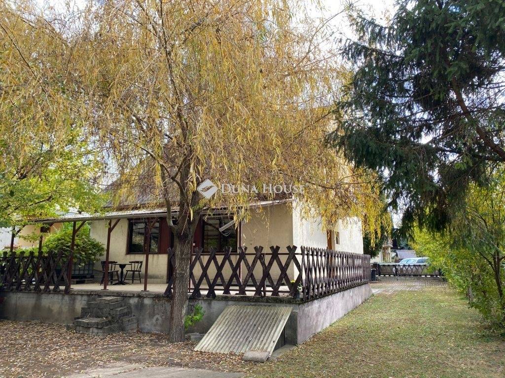 Az árnyas, körülkerített, sík kertben áll egy melléképület, melynek egyik része tároló, a másik része garázsként is használható.