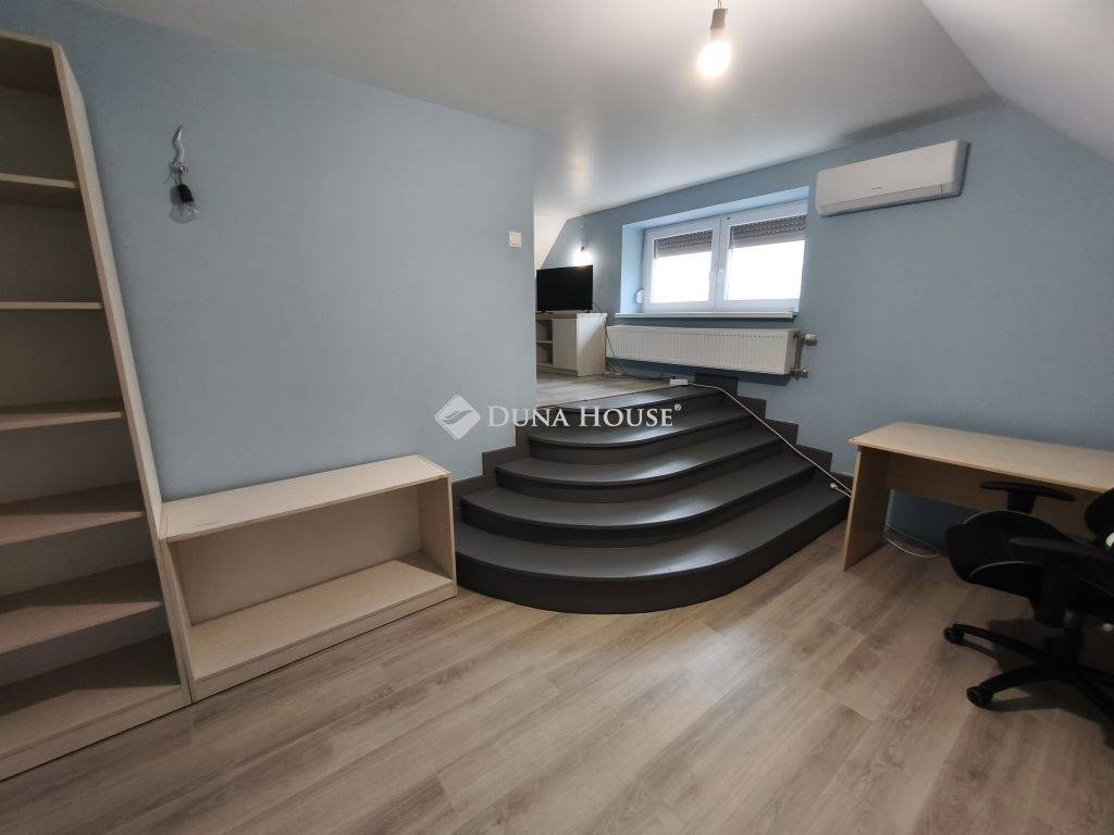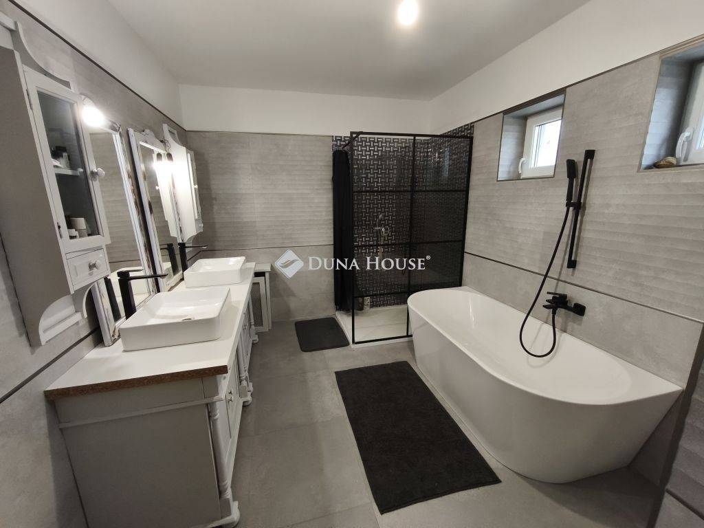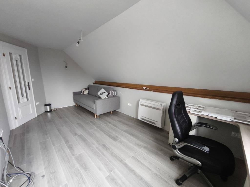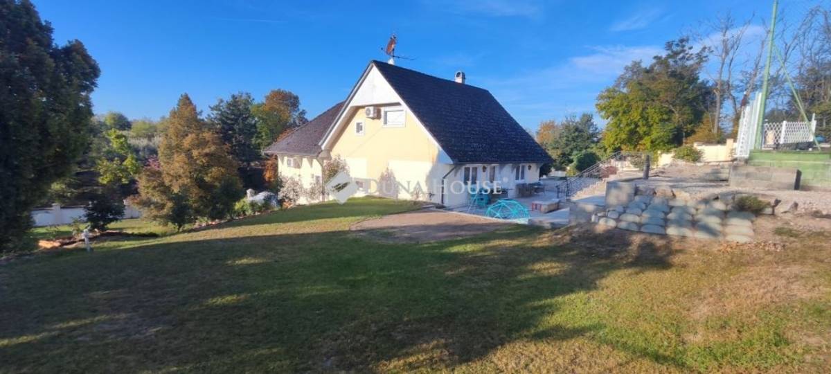 1989-ben épült, építése óta átesett bővítésen is, így érte el jelenlegi formáját. A szinteltolásos kialakítású lakóház tágas lakóterű, amelyhez alagsori szint kapcsolódik garázsokkal és kiszolgáló helyiségekkel. A nagy belmagasságú, napfényes nappali mellett 4 hálószoba található, a szülői háló gardróbbal egészül ki és az egyik szobához szintén tartozik gardrób. A ház része egy hangulatos borospince is, amely hobbihelyiségként is kiválóan használható.