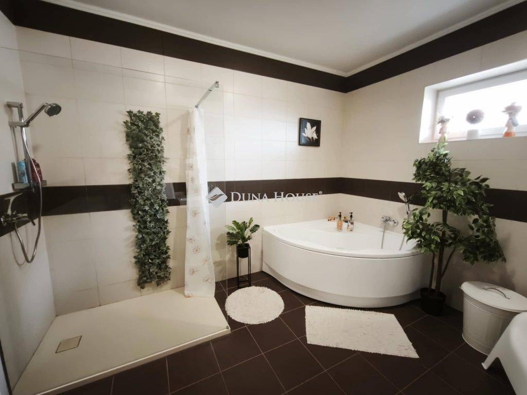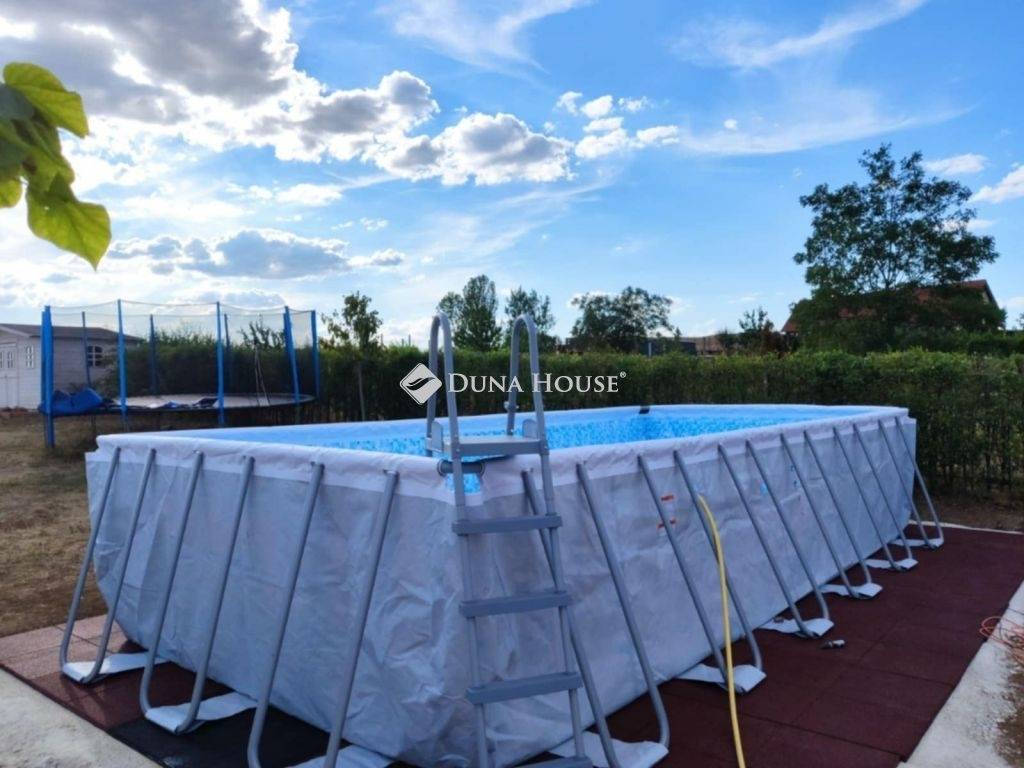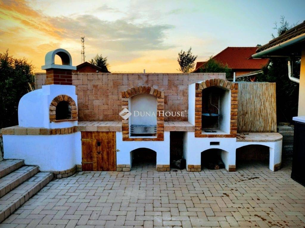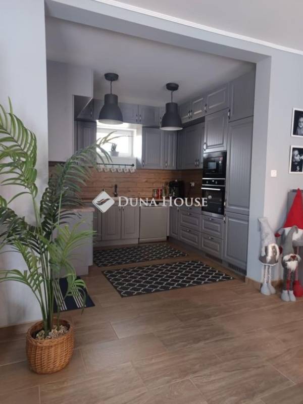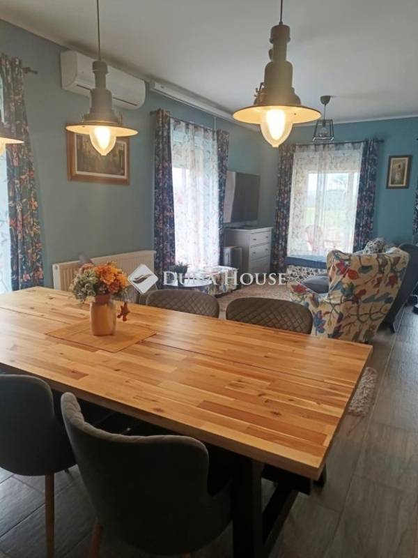 Eladó egy 2016-ban épült, tégla szerkezetű, kiváló állapotú 220m2-es családi ház 1.233 m²-es telken Veszprém megye egy nagyon nyugodt,családias településén, Sólyban. Veszprém,Székesfehérvár és a Balaton egyaránt 15-20 percen belül elérhető. Az ingatlan modern kialakítású, átgondolt elrendezésű, tágas és világos terekkel rendelkezik, ideális választás nagyobb családok számára is.A ház elosztása: négy külön nyíló szoba, egy amerikai konyhás, nappalival egybenyitott élettér, két fürdőszoba, külön WC, mosókonyha, valamint télikert. A kertkapcsolat harmonikusan illeszkedik a belső terekhez, így a mindennapi élet kényelme és a pihenés egyaránt biztosított.Az ingatlan energetikai szempontból is korszerű megoldásokat kínál: 5 kW-os napelemes rendszer működik 2029-ig szaldó elszámolással, 20 kW-os tárolót a tulajdonos már megigényelte. A fűtést gázkazán biztosítja padlófűtéssel és radiátoros hőleadással, továbbá hűtő-fűtő klíma is rendelkezésre áll. A nyílászárók műanyag szerkezetűek, redőnnyel és szúnyoghálóval felszereltek.A gondozott, 1.233 m²-es telken 18 m²-es hobbyt-ház, emellett a gyermekek számára külön telepített medence és játszótér is kialakításra került. A szépen gondozott kertben mintegy 100 m²-es sütögető és pihenőrész került kialakításra, amely kiváló helyszíne lehet családi és baráti összejöveteleknek, így a család minden tagja megtalálja a számára ideális kikapcsolódási lehetőséget.A térkövezett udvarrész akár három vendég gépjármű parkolását is lehetővé teszi a kerítésen belül , továbbá garázs is tartozik az ingatlanhoz,ahonnan közvetlenül is be lehet jutni az épületbe. A ház előtt szintén 3 térkövezett parkoló lett kialakítva egy finom parkosított környezetben.Amennyiben egy modern, energiatakarékos, igényesen kialakított, családbarát otthont keres nagy telekkel és teljes kényelmi felszereltséggel, ez a ház kiváló választás lehet. További információért és megtekintés egyeztetéséhez várom megtisztelő hívását.