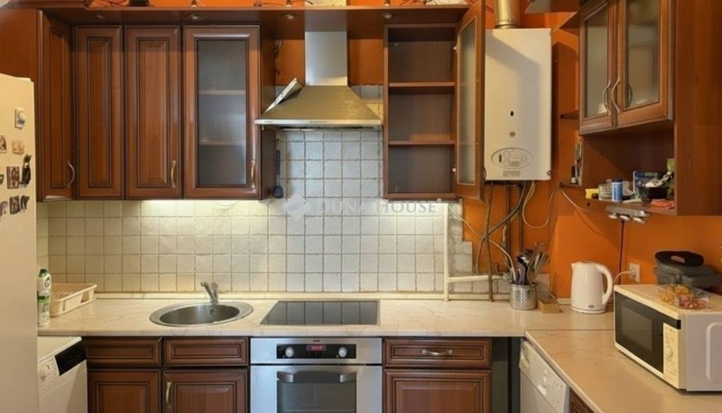 Eladó házrész Pesterzsébeten Erzsébetfalva városrészben - saját kertrésszel, melléképülettelBudapest XX. kerületében, Pesterzsébet kedvelt részén, Erzsébetfalván eladó egy 48 m²-es, kétszobás, kertkapcsolatos házrész.Az ingatlan rendezett jogi háttérrel rendelkezik, ügyvédi megosztással.A telken összesen két lakás található, amelyek egy közös fallal kapcsolódnak egymáshoz. Mindkét házrészhez külön, kerítéssel leválasztott kert tartozik, valamint önálló használatú tároló is rendelkezésre áll.A meghirdetett házrész önállóan megközelíthető, az utca felől egy külön bejáratú, szolgalmi úton keresztül.Ez a kialakítás biztosítja a jól elkülönülő használatot és a nyugodt lakókörnyezetet.Az ingatlan folyamatosan karbantartott, átlagos műszaki állapotú, igény szerint korszerűsíthető.Az alacsony fenntartási költségek: közös költség nincs, minden lakás önálló mérőórákkal rendelkezik.Alaprajzi kialakítás:A lakás belső elrendezése átgondolt, jól használhatóElőtér: 7,0 m²Nappali: 12 m²Konyha: 10,5 m²Hálószoba: 12 m²Fürdőszoba + WC: 3,2 m²Közlekedő: 3,2 m²Belmagasság: 2,75 m.A belső tereket dekoratív, boltíves nyílások tagolják, a padlóburkolat minden helyiségben világos színű kerámialap, a hálórészben laminált padló.Műszaki jellemzők:vastag téglafalakfa szerkezetű tetőfa nyílászárók duplaszárnyú, hőszigetelő üvegezésselkívül kőburkolattal díszített ablakkeretekfűtés és melegvíz: Saunier Duval kombi kazánbeépített konyhabútorAz ingatlan 120 m²-es telekrésszel rendelkezik, továbbá egy 5 m²-es, saját használatú melléképület/tároló is tartozik hozzá.Ez a házrész ideális választás lehet azok számára, akik kertkapcsolatos, alacsony rezsijű, jogilag rendezett otthont keresnek, jó elosztással, nyugodt környezetben.Családoknak, pároknak, idősebb korosztálynak vagy akár befektetési célra is jó alternatíva.