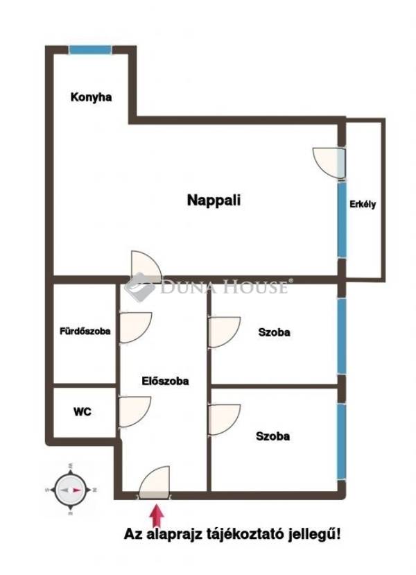 Elosztása kiváló: 2 szoba + nappali, kényelmes, jól élhető terekkel.