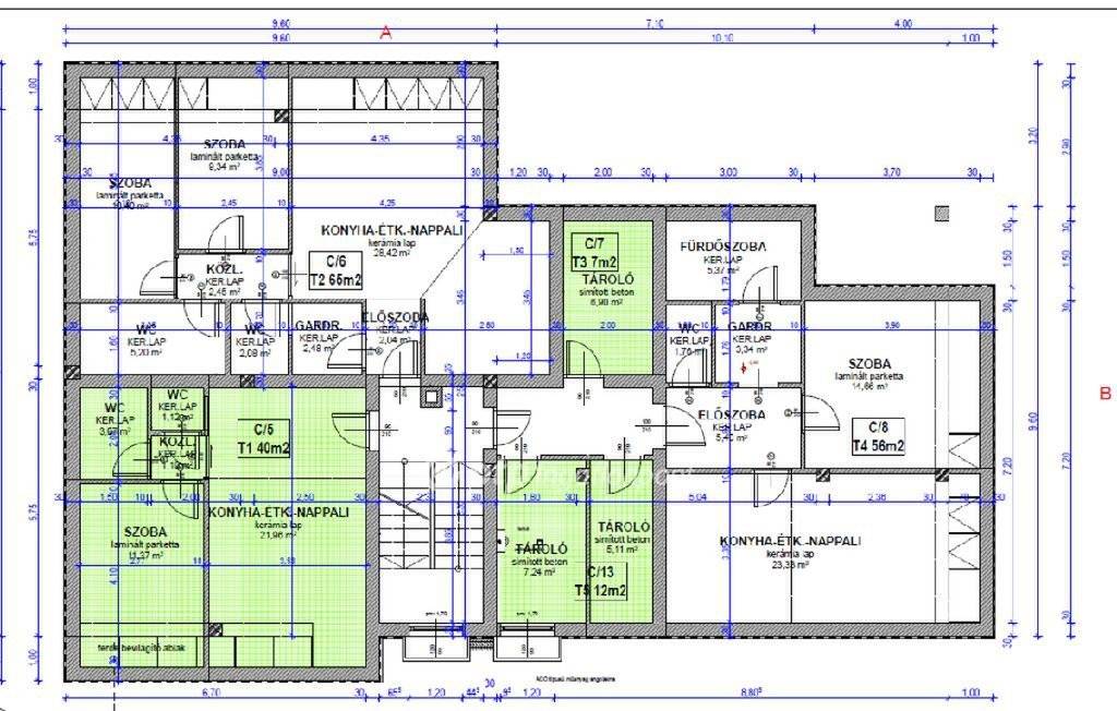 A társasházban van még egy 3 szobás és egy 1 szobás eladó alagsori lakás, szintén kedvező áron. Az alprajzon látható.