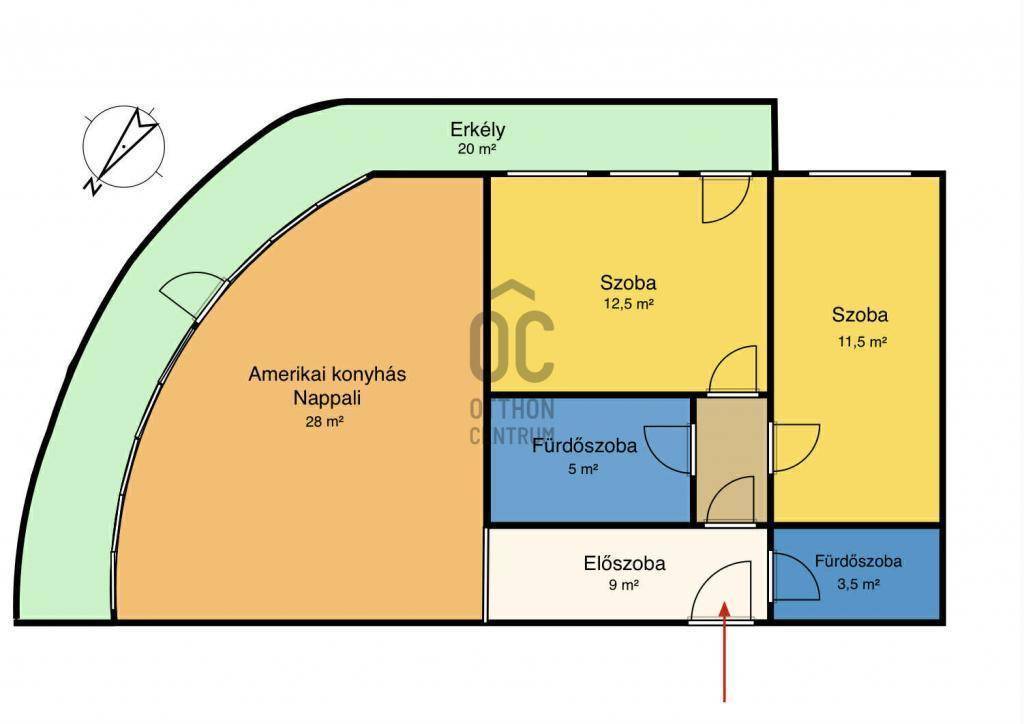 Elosztás: nappali + 2 hálószoba, 2 fürdőszoba