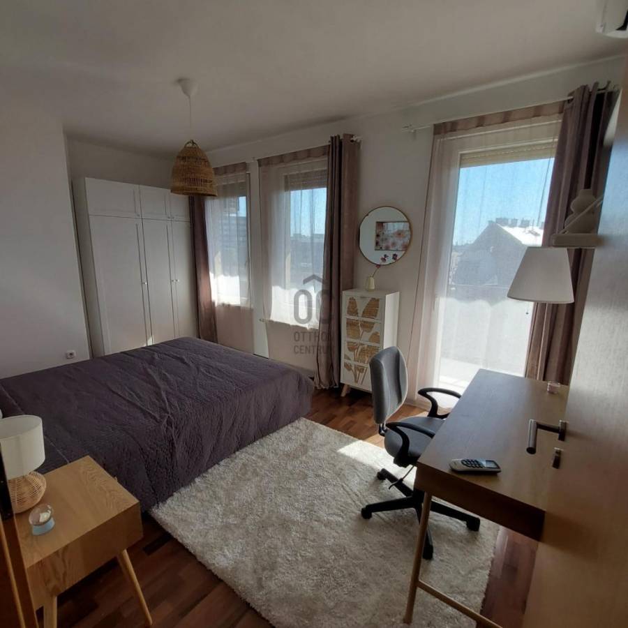 A Corvin sétány közvetlen közelében kínálunk eladásra egy 75 m²-es, 3 szobás, 2 fürdőszobás, világos és csendes lakást, egy 2010-ben épült, modern társasház 8. emeletén. Az ingatlanhoz nagy méretű erkély tartozik, ahonnan panorámás kilátás nyílik.
