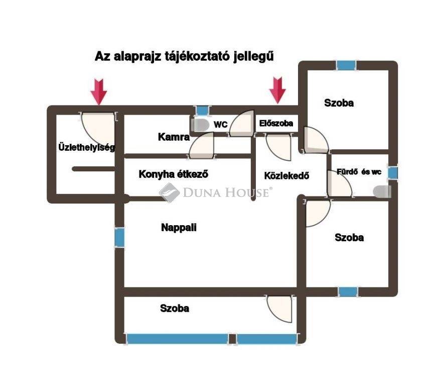 A házhoz tartozik egy 36 nm-es üzlethelyiség is, melyből praktikus garázs, műhely, akár különálló lakrész is kialakítható.