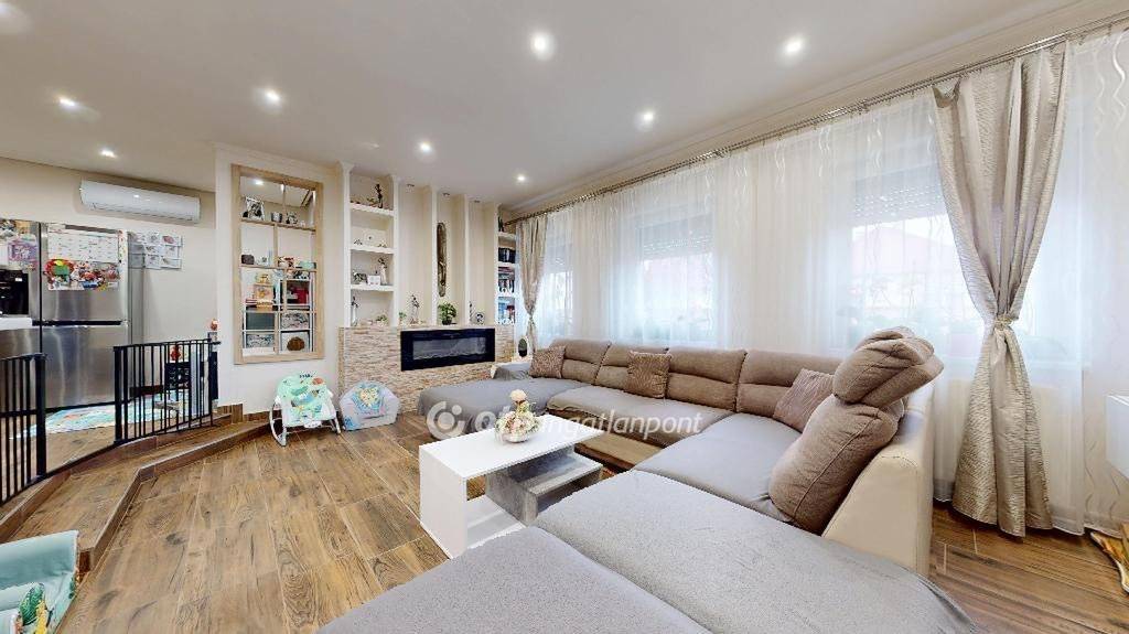 Belépve egy meleg, modern belső világ fogad, ahol az átgondolt, igényes elrendezés és a letisztult részletek csendben mesélnek a minőségről. Az otthon lelke a csodálatos, közel 55 nm-es nappali: egy tér, ahol a reggelek lassan indulnak, az esték összebújással telnek, és ahol a család mindennapjai természetesen válnak kényelmessé és bensőségessé.