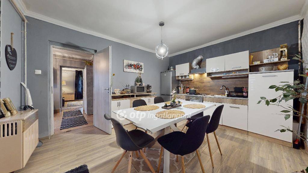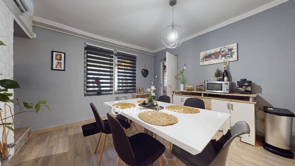 Eladó egy teljes körűen felújított családi ház Nyírbogdány központjában, mindössze körülbelül 13 km-re Nyíregyházától. Az ingatlan 2020-tól folyamatos modernizáláson esett át: megújultak a villany- és vízvezetékek, a belső és külső részek, valamint minden helyiség új burkolatot kapott, laminált padlóval és igényes járólappal. A ház új bejárati és beltéri ajtókkal, vadonatúj nyílászárókkal és szaniterekkel rendelkezik, továbbá friss, egységes festést kapott. A komfortot hűtő-fűtő klíma biztosítja. Az udvar parkosított, kerti csappal ellátva, a telekhez garázs, tároló és a ház mögött felújításra váró nyári konyha is tartozik. A ház külső része már csak színre vár. Elhelyezkedésének köszönhetően két irányból is kiváló a buszközlekedés a város és a környező nagyobb települések felé. Nyírbogdány egy fejlett, jól ellátott község, ahol iskola, óvoda, bölcsőde, ABC, hentes, pékség, dohánybolt, lottózó és posta is megtalálható. Az ingatlan alkalmas falusi CSOK, babaváró és egyéb kedvezményes hitelek igénybevételére. A költözés megegyezés szerint rugalmas, a bútorokról pedig külön egyeztetés alapján lehet dönteni.