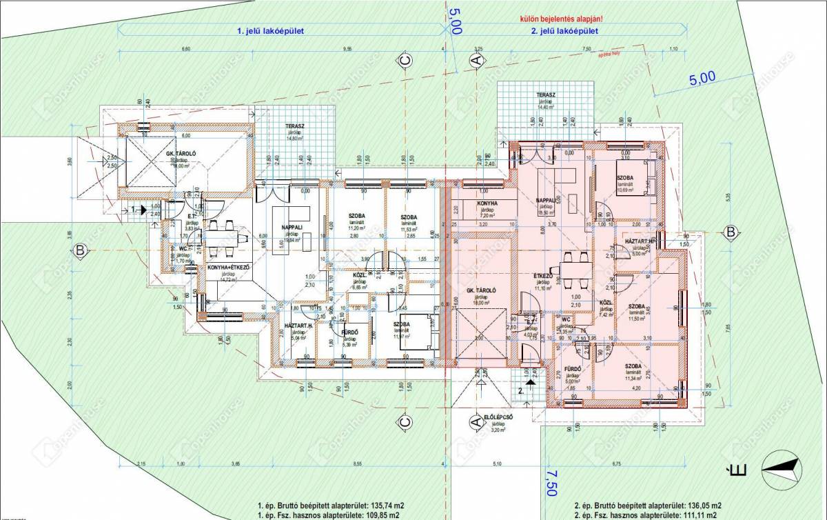 A családi ház külső szerkezete modern, új építésű, hasznos alapterülete 111,11 nm.