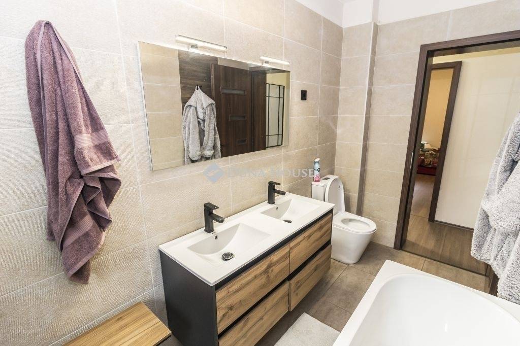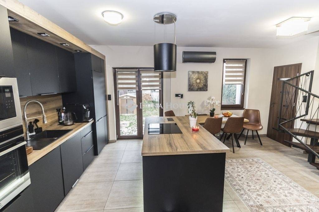 A modern konyha minőségi beépített gépekkel várja az új tulajdonosokat. A házban nappali + 4 szoba található, mindegyik tökéletesen kiszolgálja az itt élők igényeit, elrendezése miatt az alsó szint külön lakrészként is használható.A két fürdőszoba mindegyike elegáns, modern kialakítást kapott, egyikükben fürdőkád, a másikban kényelmes zuhanyzó található.